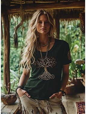 Femmes T-shirt Imprimé Graphique Tribal ancien Élégant Classique Manche Courte Col ras du cou Hauts Réguliers Quotidien Week-end Vert Été Printemps Automne Hiver