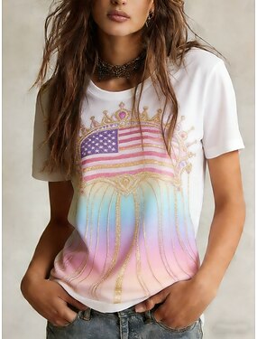 Jour de l'Indépendance Américaine Femmes T-shirt Imprimé Graphique Élégant Classique Occasionnel Manche Courte Col ras du cou Col rond Hauts Réguliers Quotidien Sortir Week-end Bleu Noir Blanche