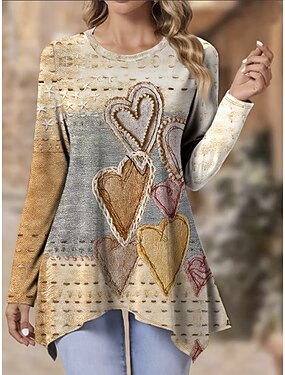 Femmes Tunique Imprimé Cœur Graphique Abstrait Élégant ancien Mode manche longue Col ras du cou Col rond Hauts Longs Quotidien Week-end Kaki Printemps Automne Hiver