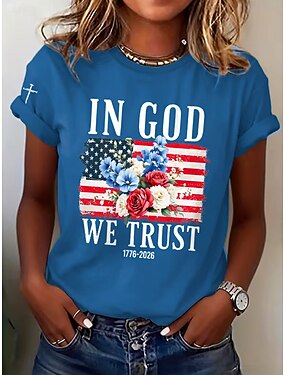 T-shirt Femme Patriote Journée de l'Indépendance Anniversaire Américain Imprimé Graphique Drapeau Drapeau Américain Élégant Classique Décontracté À Manches Courtes Encolure Ronde Hauts Quotidiens