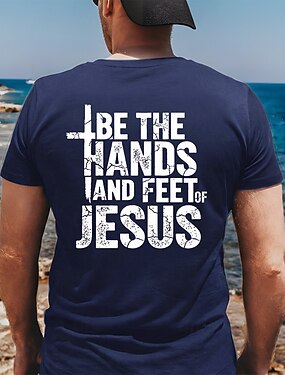T-shirt homme à manches courtes, imprimé au dos, avec la croix « Soyez les mains et les pieds de Jésus », style chrétien et religieux, coupe classique, idéal pour le quotidien et l'église. Tailles :