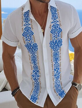 Homme Géométrique Ethnique Art abstrait Chemise Chemise Guayabera Chemise Boutonnée Manche Courte Vintage Rétro Quotidien Extérieur Vacances Été Printemps Col Rabattu Impression 3D Chemise en lin
