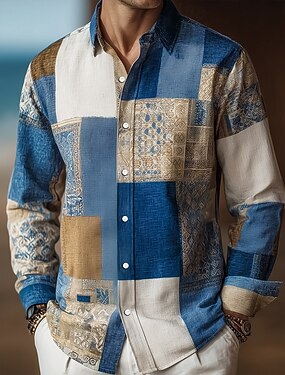 Homme Bloc de Couleur Patchwork Formes Géométriques Chemise Chemise Boutonnée manche longue Vintage Rétro Extérieur Décontracté Quotidien Printemps Automne Col Rabattu Impression 3D Chemise en lin