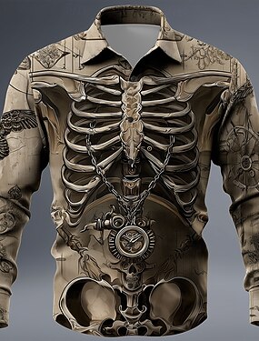 Homme Illusion d'optique Squelette Chemise Chemise Boutonnée manche longue Punk gothique sombre Extérieur Fête Été Printemps Col Rabattu Impression 3D chemises à col Violet Marron