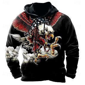 Jour de l'Indépendance Homme Drapeau Américain Aigle Sweats à capuche Sweatshirt Occasionnel manche longue Col ras du cou À capuche Fête Chasse Noir Cordon de serrage Graphique Automne Hiver Designer