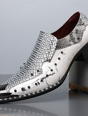 Chaussures de mariage pour hommes en similicuir – imprimé crocodile blanc avec clous, chaussures habillées et tendance pour les mariages et les événements de luxe.