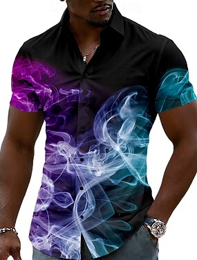 Homme Illusion d'optique Gris foncé Couleur éblouissante Chemise Chemise Boutonnée Chemise décontractée Manche Courte Mode Décontractée Vêtements de rue Vacances Printemps Automne Col Rabattu