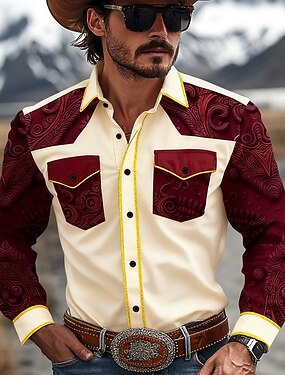 Homme Paisley Imprimé Floral Ethnique Chemise Chemise Western Chemise de cow-boy manche longue Vintage Rétro Quotidien Extérieur Vêtements de travail Automne & Hiver Col Rabattu Impression 3D Deux