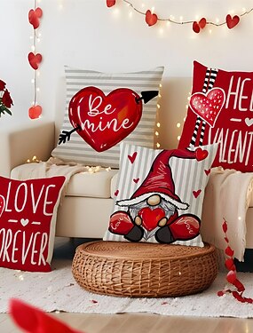 Housse de coussin pour la Saint-Valentin, coussin en lin à imprimé cœur, canapé confortable &Coussin décoratif doux pour voiture, salon, chambre à coucher, &intérieur de voiture