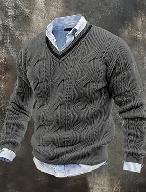 Homme Pull Pull Tricoté Côtelé Tricoter Hauts Réguliers Tricoté Plaid Col en V Mode Basique Vacances Tenue quotidienne Vêtement Tenue Printemps Automne bleu marine Kaki S M L