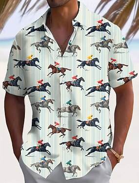 Derby du Kentucky Homme Rayé Course de chevaux Chemise Chemise d'été Chemise Boutonnée Manche Courte Vintage Rétro Fête Été Printemps Col Rabattu Impression 3D chemises à col Bleu Cyan Vert Bleu ciel