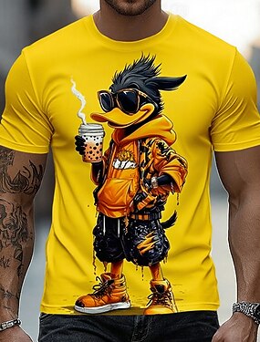 T-shirt homme imprimé intégral « canard noir grognon en veste », style streetwear tendance, coupe slim, idéal pour les activités de plein air. Tailles S, M, L, XL, XXL, XXXL.