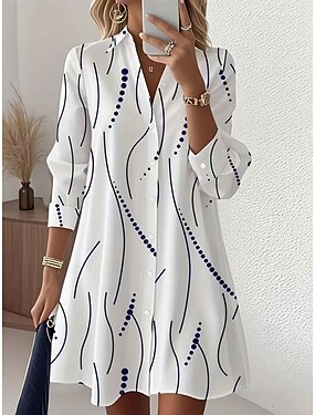 Femmes Robe Longueur Genou Robe Chemise Vacances Anniversaire Occasionnel Plage Coupe régulière Graphique À pois Abstrait manche longue Revers Bleu Blanche Rose Claire Violet Été Printemps