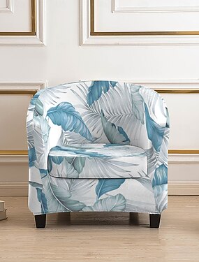 Housse de fauteuil club - Housse en polyester à imprimé rayé, végétal et géométrique | Convient aux fauteuils simples standard