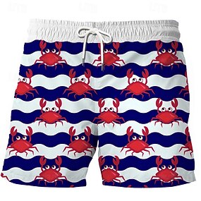 Homme Animal Lignes / Vagues Crabe Maillots de bain Shorts de bain Shorts de Surf Taille Moyenne Vacances Hawaïen Style de villégiature Vacances Fête Plage Cordon de serrage avec doublure en mesh