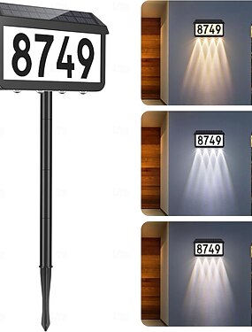 Plaques d'adresse solaires, numéro de maison extérieur étanche, plaques d'adresse lumineuses LED 3 couleurs avec piquet, numéros d'adresse lumineux à énergie solaire à fixation murale