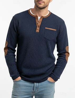 Homme T-shirt gaufré T-shirt Henley gaufré manche longue Henley Printemps & Automne Automne & Hiver Couleur Unie Mode Basique Occasionnel Faux deux pièces Vacances Maison Bureau Noir bleu marine Vert