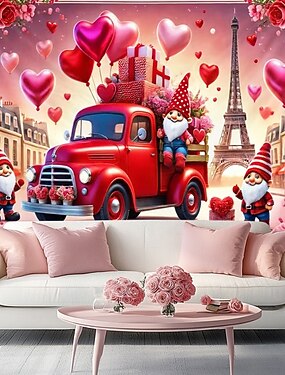 Saint Valentin Affiches Couverture de porte Bannières extérieures Rose Cœur Mignon Romantique 3D Soirée Dortoir Chambre d'adolescents Résidence universitaire Chambre d'amis pour hommes dans une