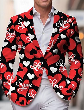 Saint Valentin Homme Cœur Veste blazer Manteau Mode Confortable Respirant Artistique Occasionnel Quotidien Tenue de soirée Festival Impression 3D Boutons Imprimé Toutes saisons Cranté manche longue