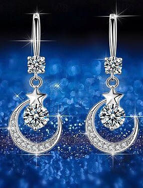 1 Paire Boucles d'oreilles For Femmes Zircon Quotidien Rue Alliage Monogramme Lune Etoile