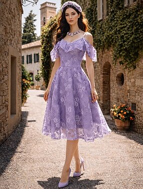 Ligne A Mi-long Robes de Bal Élégant ancien Manche Courte Col en V robe demoiselle d honneur Remise des Diplômes Dentelle avec Insert Dentelle Motif / Imprimé