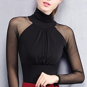Danse de Salon Haut Fronces Femmes Performance manche longue Chinlon