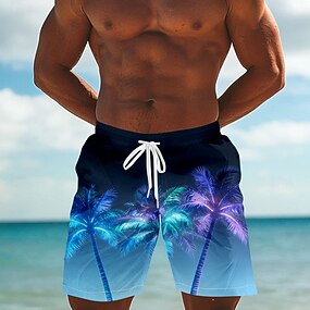 Homme Cocotier Plantes Tropicales Néon Maillots de bain Shorts de bain Shorts de Surf Taille Moyenne Streetwear Hawaïen Vacances Poches Latérales doublure en maille Taille élastique avec cordon de