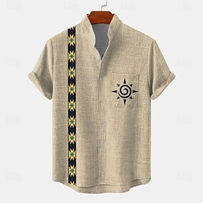Homme Chemise en lin Chemise d'été Chemise Décontractée Chemise à col officier Uni Occasionnel Plage Noir+Gris+Vert Noir + Blanc + Gris noir + blanc + vert noir + kaki + vert Manche Courte Col montant