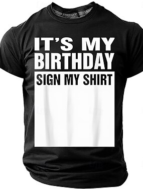 T-shirt homme « C'est mon anniversaire » avec espace pour signature blanc vierge, humoristique et interactif, idéal pour une fête d'anniversaire ou un cadeau. Coupe classique. Tailles : S, M, L, XL,