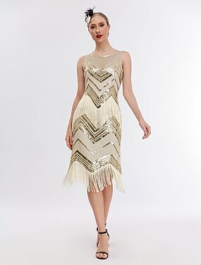 Années Folles Années 1920 Mi-long Soirée de mariage enterrement de vie de garçon Robe Charleston Sans manches Gatsby le Magnifique Invité au mariage Paillettes Paillettes Col Rond Déguisement Femmes