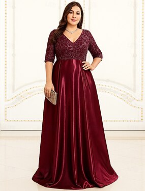 Robe A-Line grande taille élégante robe courbée formelle mariage longueur de sol manches courtes col en V dos en V avec paillettes