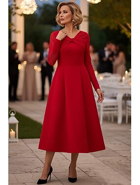 Ligne A Fourreau Colonne Longueur thé Robe de Soirée Robe de Cocktail Robe d'invité de mariage Robe de Mère de Mariée Manche 3/4 Col en V Élégant Simple Minimaliste Formel robe demoiselle d honneur