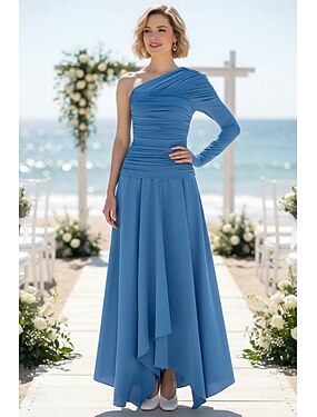 Ligne A Asymétrique Longueur cheville Robe d'invité de mariage Robes pour invités de mariage Élégant Quotidien Sans manches Une Épaule Mariage Formel avec Plis Froncé