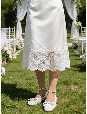 Ligne A Mi-long Robe de Soirée Robe de Cocktail Robe d'invité de mariage Robe de Mère de Mariée Manche Courte Col ras du cou Élégant ancien Luxueux Cocktail Soirée Formelle Fête de mariage avec