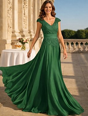 Ligne A Robe Longueur cheville Robe de Cocktail Robe d'invité de mariage Robe de Mère de Mariée Manche Courte Col en V Col Bateau Élégant Occasionnel Formel avec Broderie Appliques
