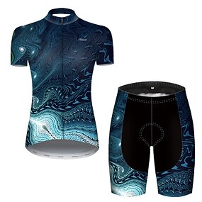 Femmes Maillot et Cuissard Velo Cyclisme Manche Courte VTT Vélo tout terrain Cyclisme sur route Été Bleu Violet Jaune Graphique Vélo Coussin 3D Séchage Rapide Poche Arrière Évacuation de l'Humidit