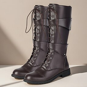 bottes à lacets en daim marron pour femmes - bottes mi-mollet vintage modernes avec talons épais pour la mode de tous les jours, les promenades d'automne et les costumes à thème
