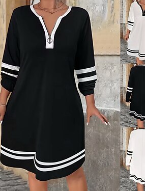 Femmes Mini Robe Robe trapèze Robe d'été Occasionnel Quotidien Coupe Ample Rayé Manche 3/4 Col en V Noir Blanche Été Printemps Automne