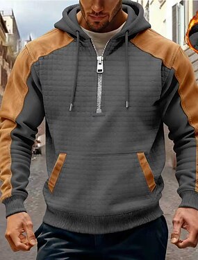 Homme Sweat à capuche Noir bleu marine Gris foncé À capuche Uni Poche Avant Quart de zip Quotidien Fête Sortir Polyester Streetwear Rétro Occasionnel Automne Hiver Vêtement Tenue Pulls Capuche Pulls