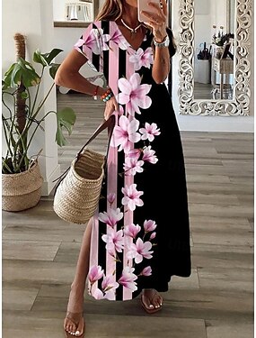 Femmes Robe maxi Robe d'Été Robe T-Shirt Robe trapèze Vacances Occasionnel Plage Sortir Coupe Standard Fleuri Graphique Manche Courte Col en V Bleu Rose Claire Grise Été Printemps