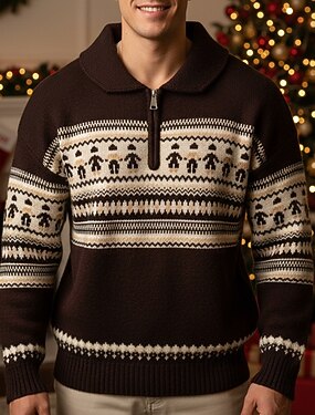Homme Chandails de Noël Gilet Cardigan Pull Fair Isle Pull zippé Pull Tricoté Côtelé Tricoter Hauts Réguliers Jacquard Zip Up Géométrique Col montant ancien Mode Noël Vacances Vêtement Tenue Automne