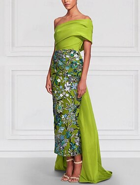 Fourreau Colonne Longueur au sol Broderie perlée Robe de Cérémonie Robe de la mère de la mariée Robe de Soirée Robe de bal avec surjupe Tenue de soirée Élégant Bloc de Couleur Fente Haute Manche