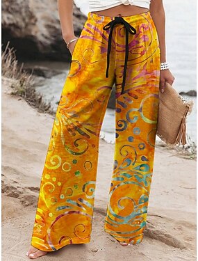 Femmes Jambe large Pantalons Vacances Occasionnel Long Taille haute Fleuri Taille Élastique Impression Coupe haute Respirabilité Doux Micro-Élastique Vacances Rue Tenue quotidienne Jaune Bleu Vert