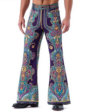 Mardi Gras Homme Paisley Imprimé Floral Carnaval Pantalons Pantalon Disco Pantalons pattes d'éléphant des années 60 et 70 Taille Moyenne Vintage Rétro Soirée Fête Poches Latérales Pantalon à jambe
