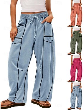 Femmes Culottes Jambe Large Chinos Vacances Streetwear Occasionnel Longueur complète Taille moyenne Uni Avec Poches Conception à cordon élastique Confortable Micro-Élastique Quotidien Extérieur