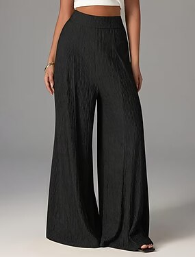 Femmes Pantalons Pantalon décontracté Pantalon d'été Pantalons de Plage Vacances Mode Décontracté Quotidien Longueur complète Taille Moyenne Couleur Unie Uni in in france they say Pontalon wide leg