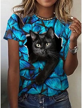 Femmes T-shirt Imprimé Graphique Chat ancien Élégant Occasionnel Manche Courte Col ras du cou Col rond Hauts Réguliers Occasionnel Quotidien Bleu Jaune Rouge Vert Gris Été Printemps
