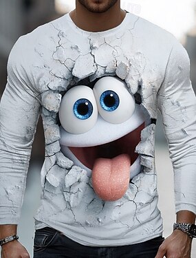 Homme 3D Émoticônes amusantes T-shirt manche longue T-shirt Impression 3D Col ras du cou Chemise Mode Exagéré Rue Quotidien Bleu Ciel Jaune Bleu Été Printemps Automne Vêtement Tenue S M L XL XXL XXXL