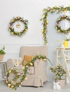 Guirlande de 1,80 m d'œufs de Pâques artificiels colorés, guirlande rustique printanière avec œufs pastel &Des accents floraux parfaits pour les fêtes ¢re de table, décoration de table, couronne