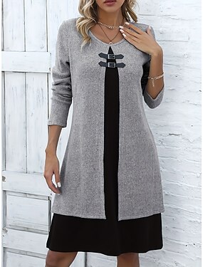Ensemble deux pièces Robe fourreau colonne longueur thé Robe de fête Robe cocktail Robe d'invitée de mariage Robe mère de la mariée Manches longues encolure ras du cou Élégante Vintage Fête avec fleur